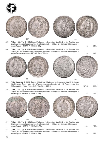 309 Taler liegende 4, 1624, Typ 3, Hüftbild der Madonna, im linken Arm das Kind, in der