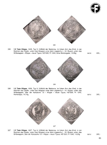 337 1/2 Taler Klippe, 1627, Typ 6, Hüftbild der Madonna, im linken Arm das Kind, in der