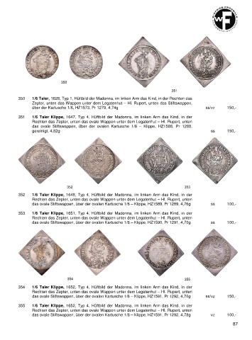 355 1/6 Taler Klippe, 1652, Typ 4, Hüftbild der Madonna, im linken Arm das Kind, in der